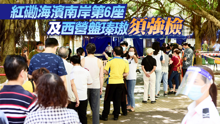 另外,衛生防護中心提醒,與紅磡愛景街8號海濱南岸第6座,及西營盤德輔道西321號瑧璈相關的指明人士,須於明日(20日)遵從強制檢測公告進行檢測。(圖:中通社)