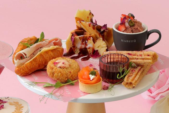 聯乘英式下午茶以玫瑰入饌,供應多款鹹甜點,首先以Rosemantic Summer 限定推出的麻糬窩夫配玫瑰雪糕揭開序幕,甜點有西班牙肉桂條配玫瑰朱古力醬,而精選鹹點包括火腿芝士牛角包、鮮蟹肉脆薯及煙三文魚撻。另外食客還可自選一杯特飲,包括「巴西莓玫瑰奶泡咖啡」、「巴西莓玫瑰意式冰搖」或「巴西莓玫瑰豆奶碎冰」可供選擇。