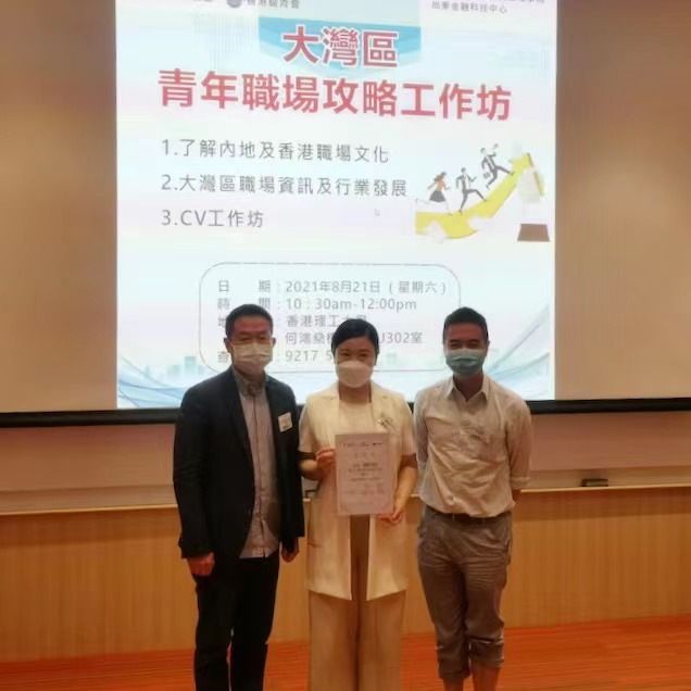 由油尖旺民政事務處、大灣區人力資源及管理人員協會和香港駿青會聯合主辦,香港理工大學工商管理學院、尚乘金融科技中心協辦的「大灣區青年職場攻略工作坊」21日假香港理工大學舉行首場宣講。活動旨在加深香港青年人對大灣區發展機遇的認識和了解,邀請多位香港的專家講者分享經驗和心得,吸引不少理工大學及其它各大院校在校學生到場參與。