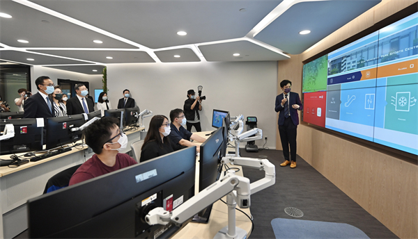 聶德權其後參觀區域數碼監控中心,了解人員如何透過數碼技術遙距監察多個場地的機電設備狀態,以減少前線員工前往實地視察需要,讓部門更靈活調配人手,同時透過數據分析提升機電設備運行時的能源效益。