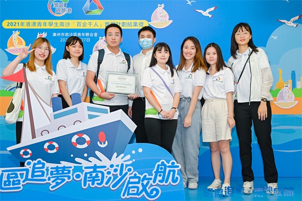 27日,共青團廣州市南沙區委員會、廣州市南沙區青年聯合會(以下簡稱「團區委、區青聯」)主辦的2021年港澳青年學生南沙「百企千人」實習計劃結業禮在南沙區圖書館報告廳舉行。香港中聯辦廣東聯絡部交流處處長吳圓、副處長朱元,澳門中聯辦廣東聯絡部副處長岑麗春,南沙區人民政府副區長惠立新,南沙區人大常委會副主任冷瑞華,南沙區政協副主席吳黎明等領導嘉賓,以及港澳青年實習就業基地代表、港澳青年學生代表近100人參加活動。