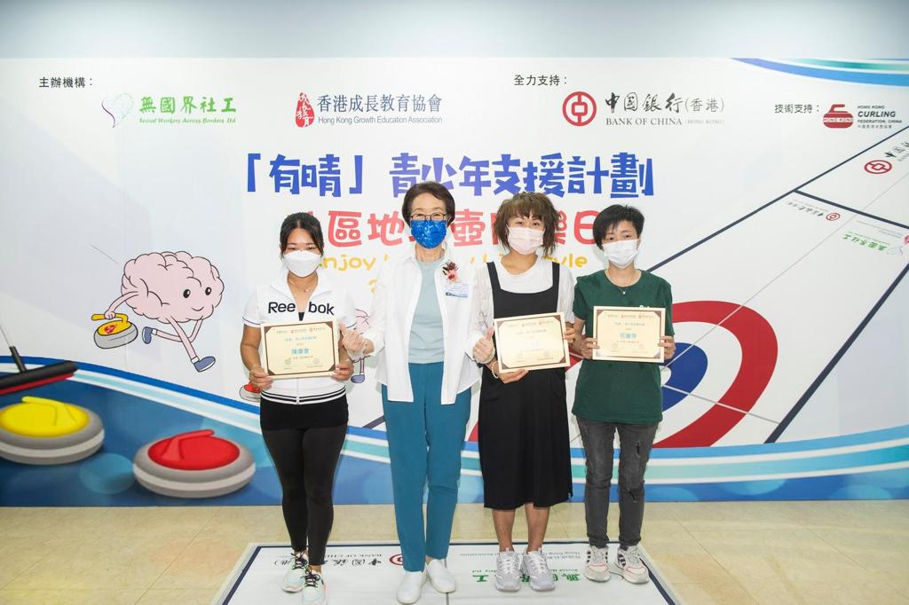 陳婉嫻為「有晴」青少年支援計劃地冰壺大使及精神健康大使頒發證書。