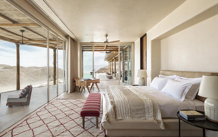 酒店設有60間套房和別墅,散布於廣闊的沙漠景觀之中。無論是沉浸式的基布茲農場體驗(Kibbutz experiences)、觀星活動、山地自行車之旅、吉普車遊覽、騎駱駝穿行明豔的內蓋夫沙漠,還是死海漂浮之旅,那裏的度假體驗想必能滿足旅行者壓抑已久的旅行願望。