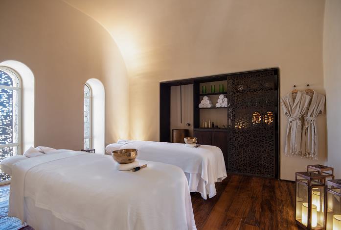 酒店內設有六善標誌性的「地球實驗室」、駱駝廄舍、綠植蔥鬱的花園和露天圓形劇場等,實踐可持續發展和循環經濟的理念;在水療中心,六間理療室提供各類養生呵護,煉金術酒吧(Alchemy Bar)供住客自製植物萃取飲品,客席醫師則帶來中醫、整骨療法及能量治療的方案。水療中心還配備了兩個游泳池,其中包括坐擁沙漠美景的無邊泳池和提供清新果汁的飲品吧。