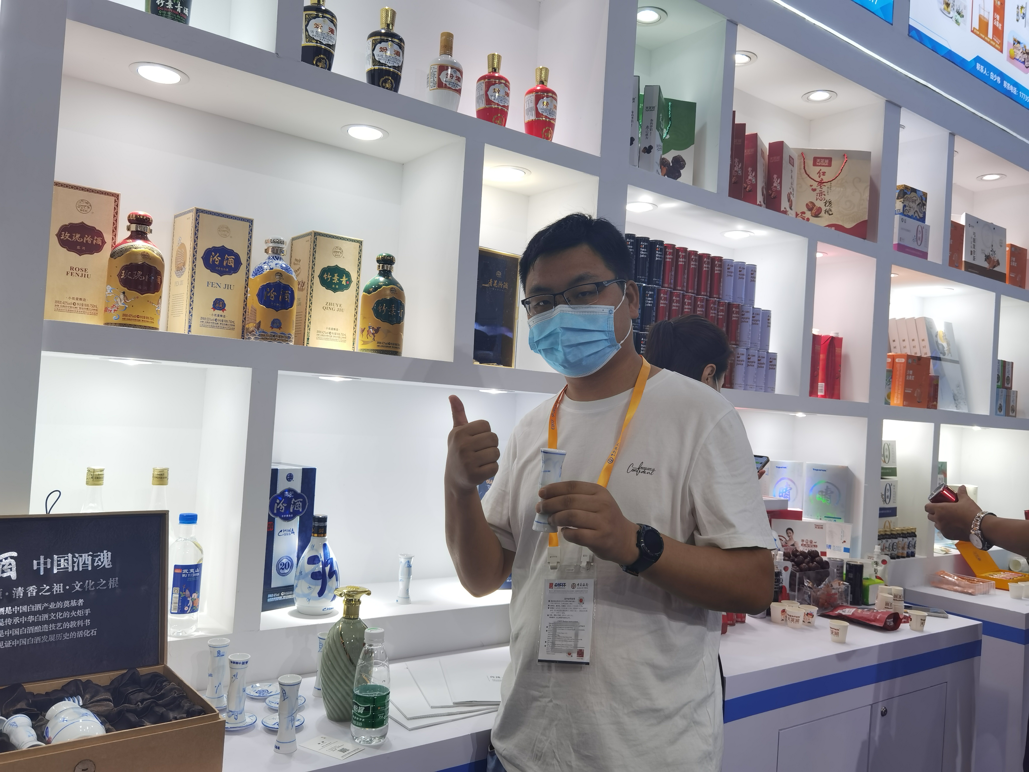 觀展嘉賓為口感清香純正的山西杏花村汾酒點讚