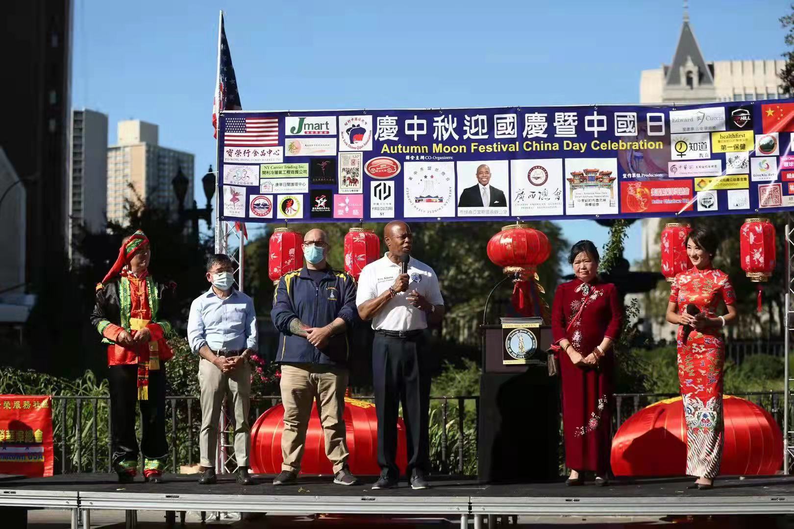美國紐約當地時間2021年9月19日中午12時,隨着一曲廣西著名民歌《只有山歌敬親人》的優美旋律在美國紐約布魯克林區政府廣場響起,由美國廣西僑胞聯合總會和布魯克林區政府聯合主辦的「慶中秋迎國慶暨中國日」的活動正式啟動。活動還特別邀請了紐約市官方代表(Eric Adams)亞當斯出席,廣大廣西籍僑胞參加。