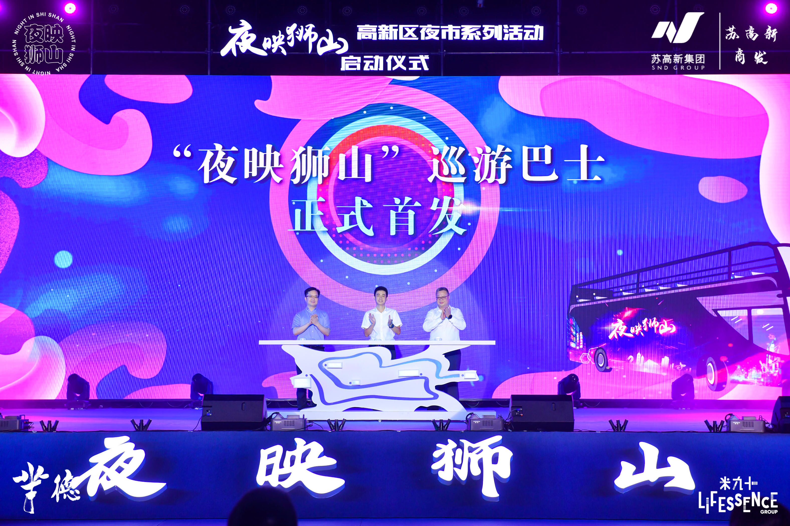 活動中,發布了「夜映獅山」巡遊巴士線路。巡遊巴士首期將安排5個站點,分別是獅山國際會議中心、龍湖時代天街、金鷹、綠寶廣場、淮海街,根據各夜市與商業載體布局,串聯多個夜市,有效結合「夜遊」和「夜購」。