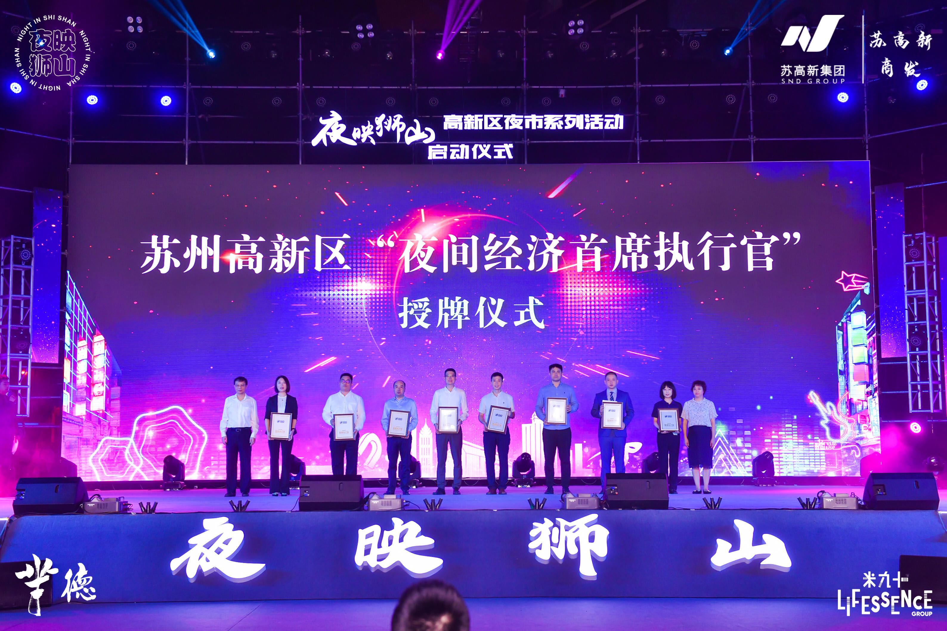 一直以來,高新區一批優秀的商業載體和商戶平台,為區域夜間經濟繁榮積極貢獻力量。為進一步發揮頭部商家的示範帶動作用,全面整合商業資源,持續擦亮「夜映獅山」品牌,高新區授予淮海街、綠寶廣場、蘇州樂園、商發公司、清華·樊登書店、深潛體育、新石器無人車、都喜酒店8家企業「夜間經濟行政總裁」稱號,8家企業現場發布宣言。