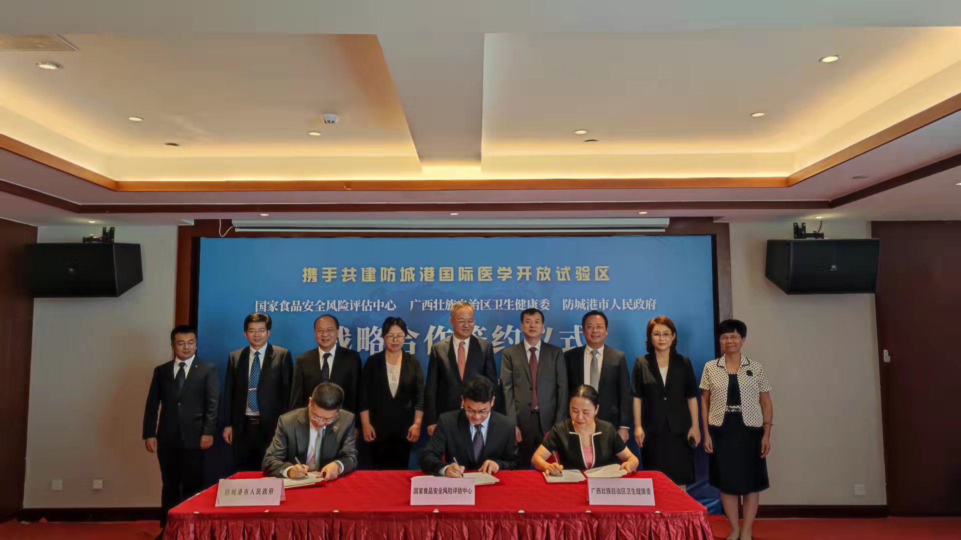 9月28日,廣西防城港市舉行國家食品安全風險評估中心、廣西壯族自治區衛生健康委、防城港市人民政府戰略合作框架協議簽約儀式。這是圍繞共同建設防城港國際醫學開放試驗區(以下簡稱試驗區)簽訂戰略合作協議的第一家國家級權威技術機構,三方將圍繞國際人文合作交流、專業技術能力提升、食品產業高質量發展等方面緊密合作,共建國家食品安全與營養創新平台。