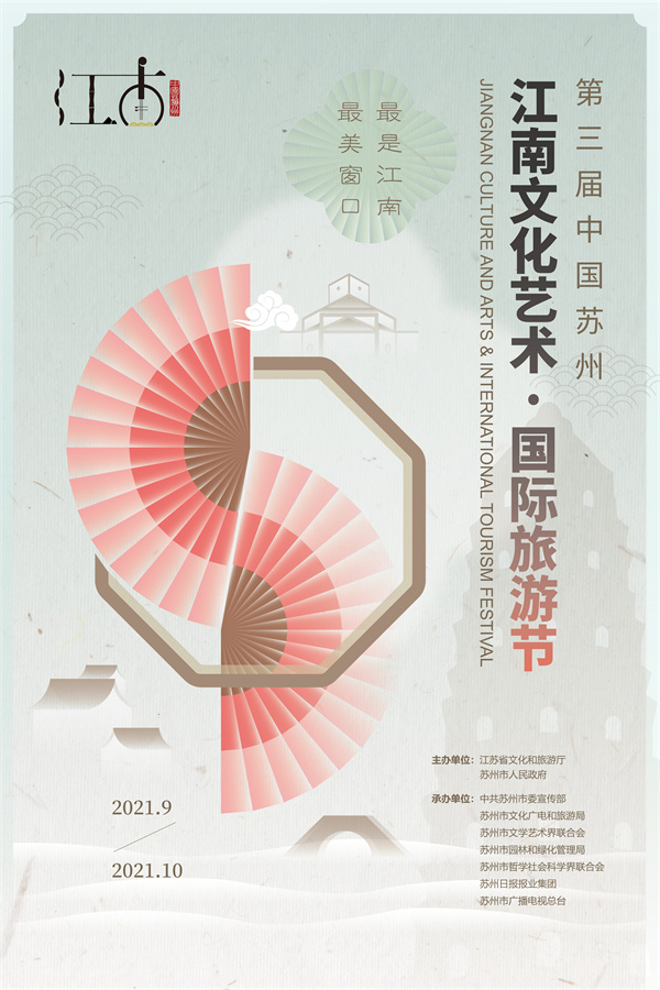 「最是江南 最美窗口」,第三屆中國蘇州江南文化藝術·國際旅遊節於2021年9月——10月在蘇州舉行。期間,將集中呈現「雅韻江南」「文論江南」「精緻江南」「美好江南」及「樂游江南」五大板塊內容,涵蓋舞台藝術、文論、書法、美術、影視、旅遊、群文、民間工藝等藝術門類,為市民遊客奉上豐盛的文旅大餐。