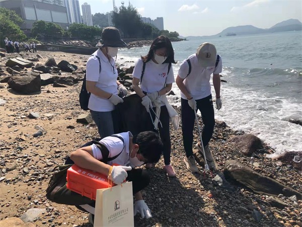 新冠疫情下使用大量膠製餐具間接令沙灘垃圾堆積尤甚,影響海洋生態和社區環境。中資企業中石化冠德控股有限公司聯同中石化化工銷售香港有限公司、中國石油國際事業香港有限公司、招商局港口控股有限公司、中國能源船舶管理有限公司、中國化學工程有限公司等駐港中資企業踐行「中企關愛、同路同行」理念,16日上午,50餘名義工走入港島南區沙灣海灘,頂著烈日炎炎,用了近一個半小時清潔,共清理17塑膠袋海洋垃圾,並及時交由食物環境衛生署處理。