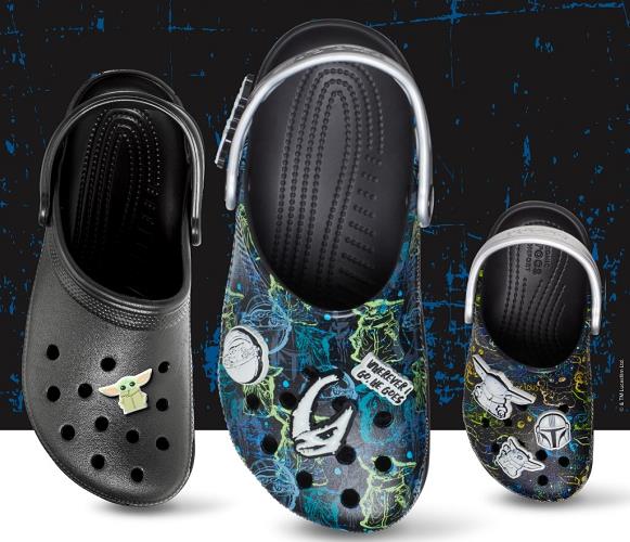 若讀者是迪士尼的粉絲,不可錯過Mandalorian及Cruelle系列,前者上印有深受觀眾愛戴的角色Grogu(The Child)圖案,鞋面上的彩色Grogu圖案,可隨意配搭7個銀色Jibbitz配飾,大人或小朋友都可穿;後者採用《黑白魔后》電影為靈感的涂鴉圖案,腳跟位置以黑白毛毛球點綴,更附送13個Jibbitz配飾,適合不喜歡循規蹈矩的人。