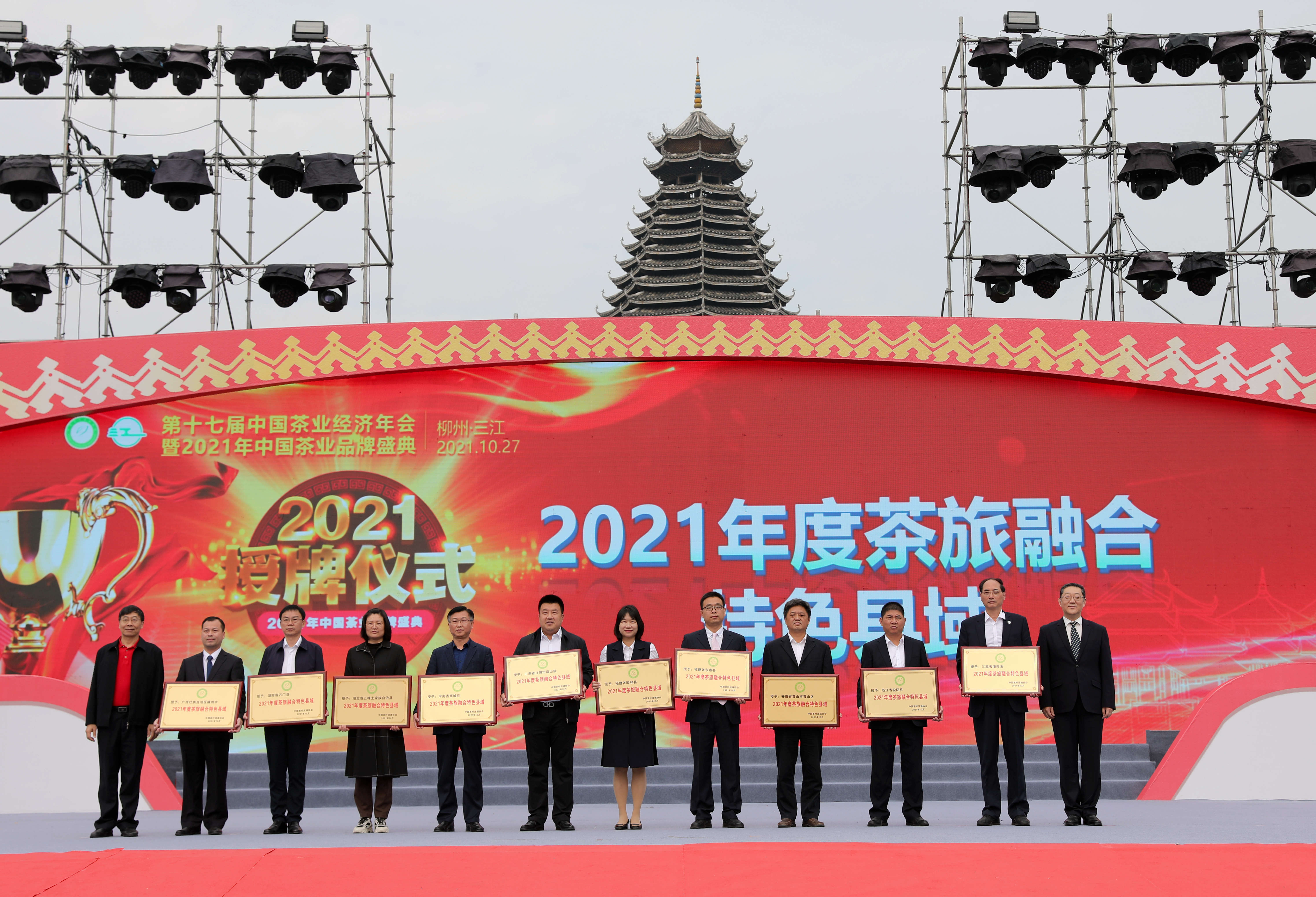 10月27日,第十七屆中國茶業經濟年會暨2021年中國茶業品牌盛典在廣西柳州市三江侗族自治縣開幕,來自全國各地的近千名茶界精英、專家學者齊聚侗鄉,圍繞「三茶統籌 消費振興 健康侗茶 夢縈三江」主題,共推中國茶業高質量發展。