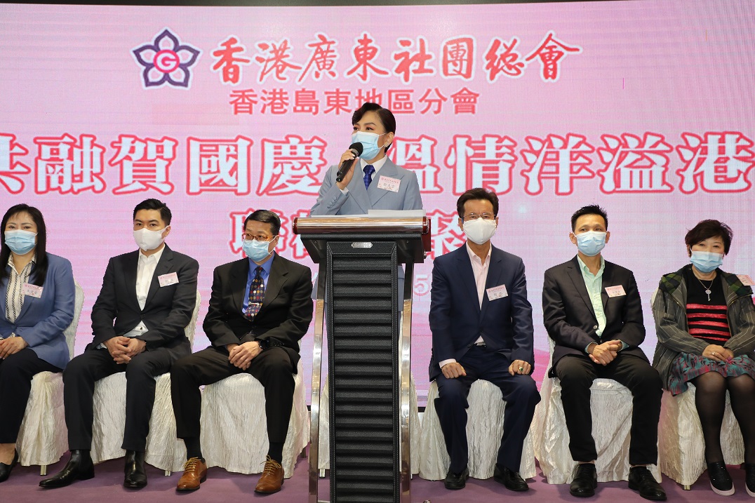 香港廣東社團總會香港島東地區分會日前舉行「社區共融賀國慶 溫情洋溢港島東」聯歡茶敘活動。民政事務局副局長陳積志,港區全國人大代表、香港廣東社團總會香港島東地區分會主任鄺美雲,香港島各界聯合會地委會主任劉慶揚,香港廣東社團總會香港島東地區分會常務副主任胡池、常務副主任劉毅、朱建蘭、林其龍、馮翠屏、吳家榮等出席主禮。