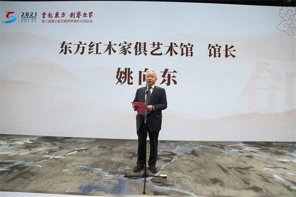 活動主辦方之一東方紅木家俱藝術館姚向東館長表示,本次論壇作為第四屆兩岸文創設計大賽的系列活動之一,以「雲起東方 創藝無界」為主題,是東方人文追求的延續,通過蘇作雲平台跨界出圈,打破時間、空間、行業的邊界,多元包容的多維創意,讓東方美學創造無限可能。兩岸高校論壇為兩岸師生搭建了更加緊密的交流平台,讓兩岸的師生可以透過論壇促進彼此的了解,學習彼此文創方面的理論和實踐。希望兩岸高校青年藝術創作者,依循黃公望的藝作精神,不忘初心,敢於跨界、推陳出新,讓藝術碰撞出不一樣的火花。