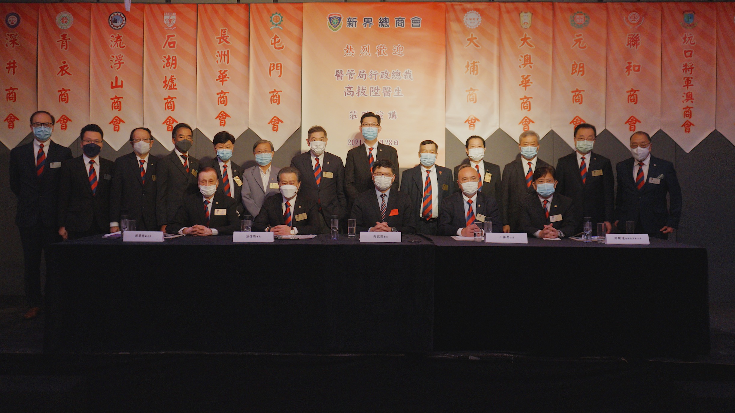 新界總商會日前假尖沙咀美麗華酒店舉行例行董事會會議,醫管局行政總裁高拔陞應邀主講。他分享了香港公共衛生系統在疫情前後的應對變化,使會員對相關措施及醫療體系的認識有了深入了解。會議由該會會長張德熙、主席王振聲、副會長周華焯、會務委員會主席周駿達與60餘位會員現場出席。