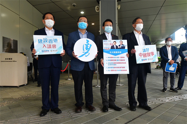 他又提出當選的「五大承諾」,包括:維護國家安全、維護「一國兩制」;講好中國故事、香港故事;促進人大、政協等界別成員參政議政;盡快促成與內地、澳門免檢通關;推動香港融入國家大局,為年青人爭取更多機遇。