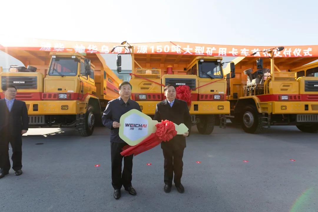 11月8日,濰柴-神華烏海150噸大型礦用卡車首批交付儀式在揚州舉行。山東重工集團黨委書記、董事長,濰柴集團董事長譚旭光向神華烏海公司交付「金鑰匙」,標誌着濰柴自主研製的「大國重器」正式批量商業化應用,徹底打破國際品牌長期壟斷,實現自主可控。