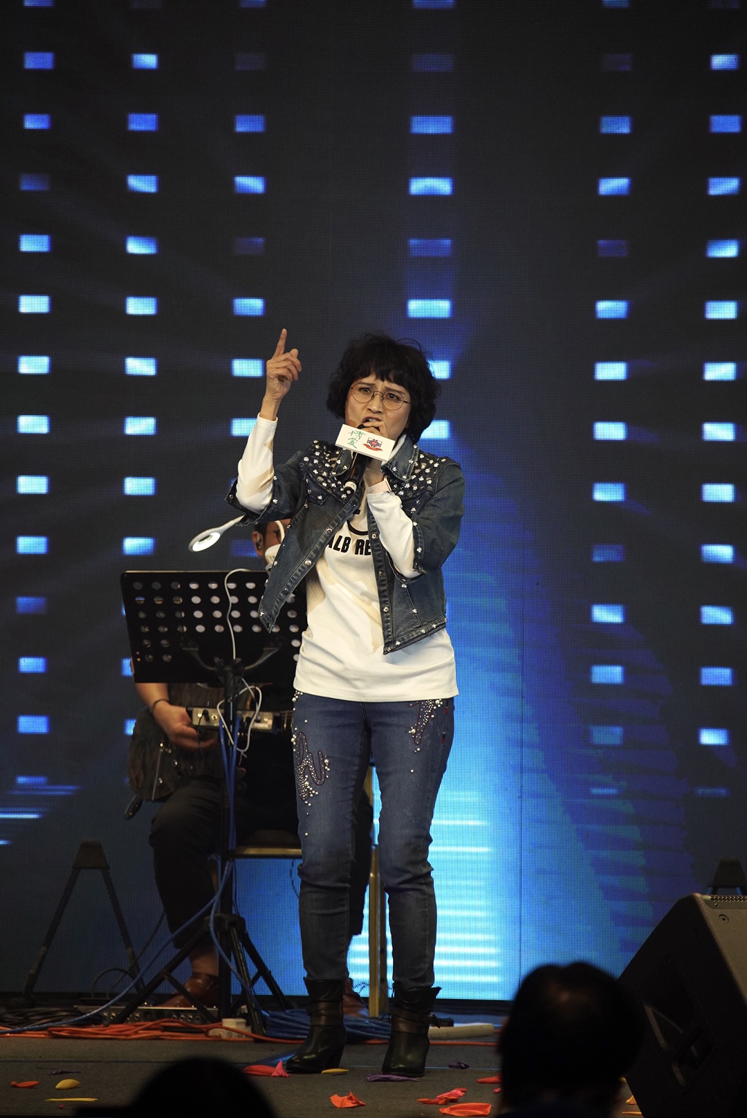 冠軍得主盧炘榮(61歲)演唱《中國夢》,令現場氣氛一片激昂。