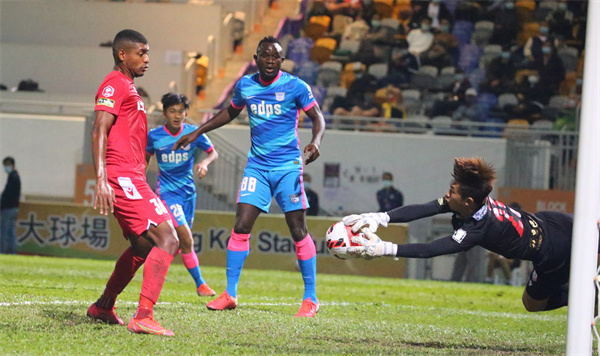 冠忠南區門將伍瑋謙成功化解傑志的攻門。