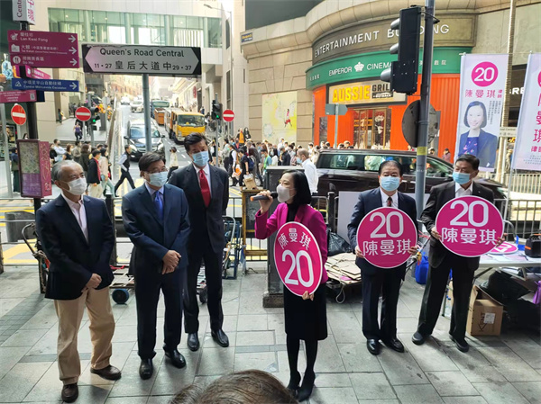 圖說:陳曼琪選舉前在中環街站介紹政綱