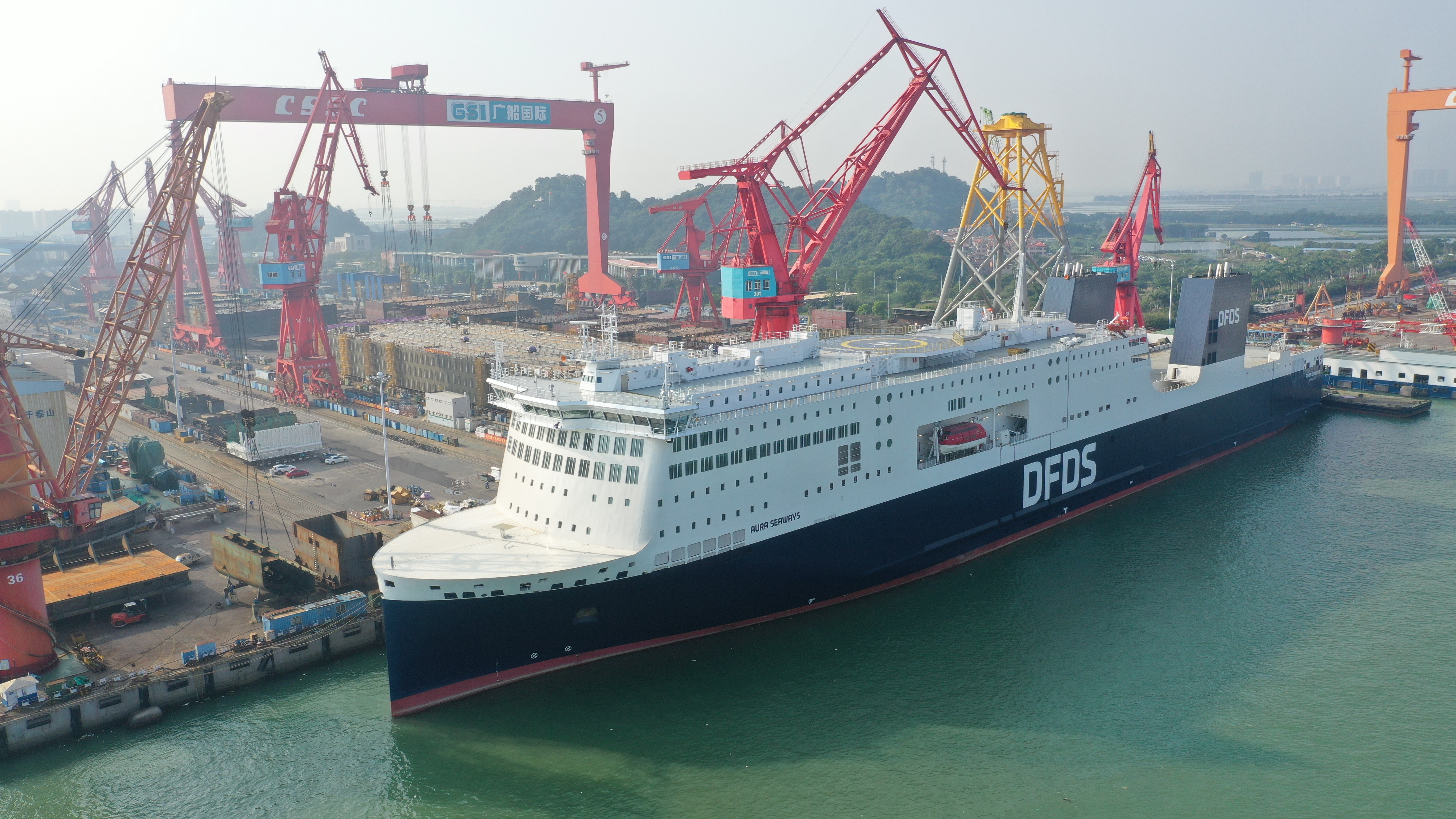 此次出口的豪華客滾船為600客/4500米車道船,是北歐最大的航運和物流公司——丹麥DFDS航運公司訂製。該船長230米,寬31米,總噸56,043噸,載重噸約11,950噸,最大載客600人,將主要在波羅的海東西岸之間沿線國家的港口運營,裝載各類車輛橫跨地中海是其主要業務之一。