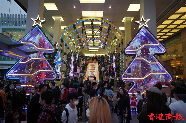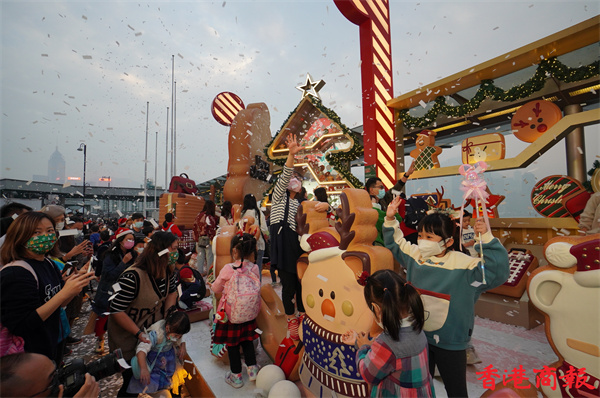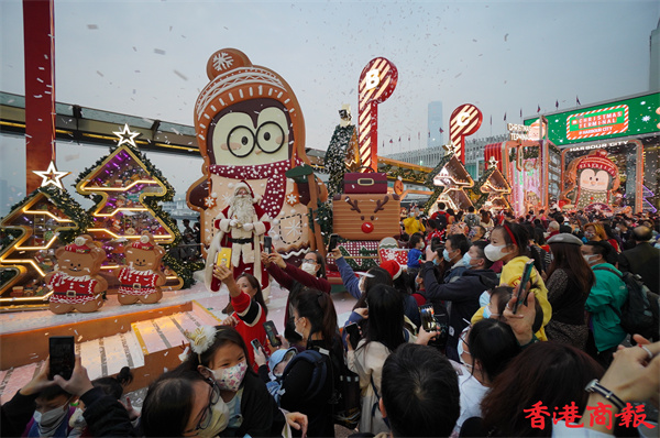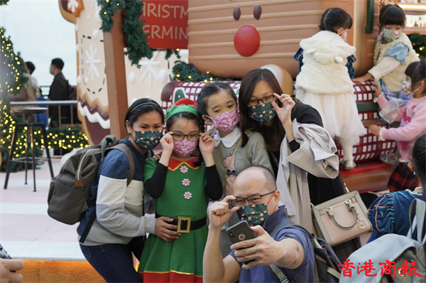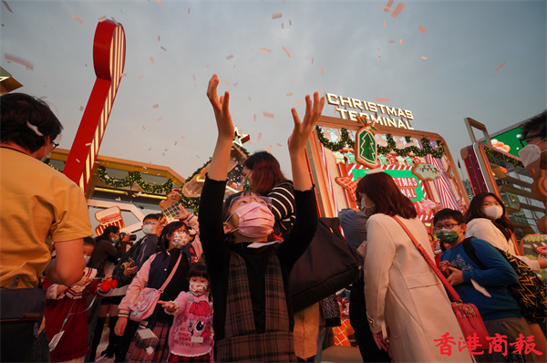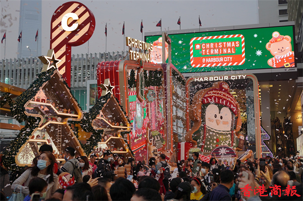 今年平安夜因疫情關係,大多數市民都未能到外地過一個白色聖誕。化身成「聖誕客運站」的尖沙咀海港城進行了一個特別的活動,放紙碎營造漫天飄雪效果,為這個平安夜佳節增添歡樂氣氛。尖吵咀海傍聖誕氣氛濃,黃昏時分市民就出來慶祝,西九香港最大聖誕樹成為打卡熱點。警察認真巡邏,市民嚴守防疫規定,秩序井然。(摄影 俊文 灣仔羅)