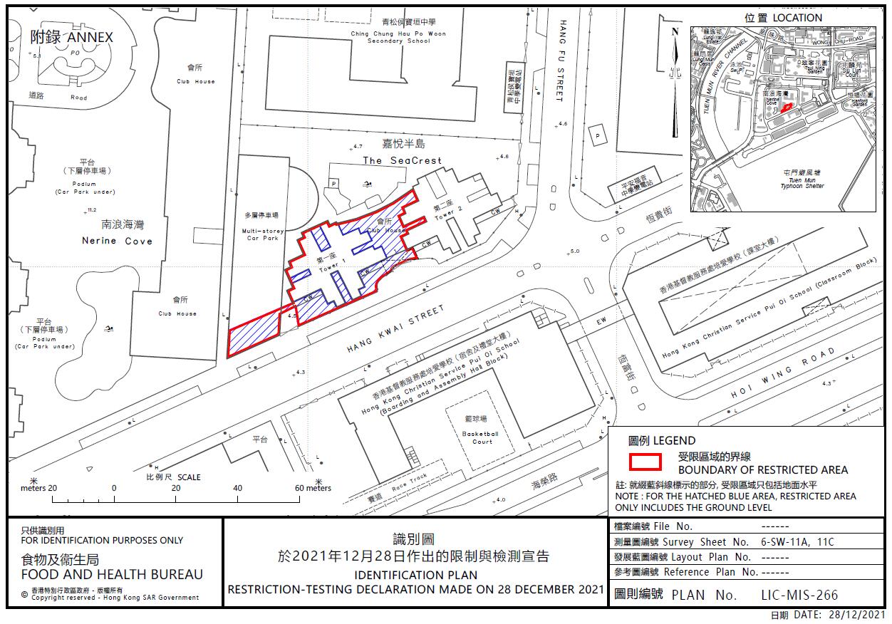 港府發言人表示,由於今日發現一宗曾在上址居住的初步確診個案,初步顯示涉及變異病毒株,經評估後相關區域感染風險有機會較高,政府經檢測呈陽性後決定就相關區域作出限制與檢測宣告。政府將於封區內設立臨時採樣站,並要求受檢人士於明日凌晨0時30分前接受檢測。