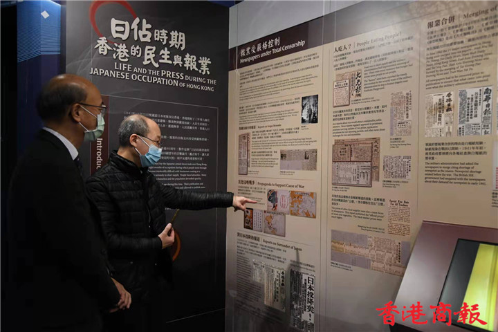2021年是日本攻佔香港80周年。新聞博覽館近日推出「日佔時期香港的民生及報業」專題展覽,以當年的報章報道及實物圖片,展示香港市民三年零八個月的苦難歲月,以及本港報業,在日本軍政府統治下,如何應對。(記者 蔡啟文攝)