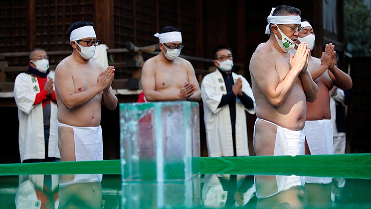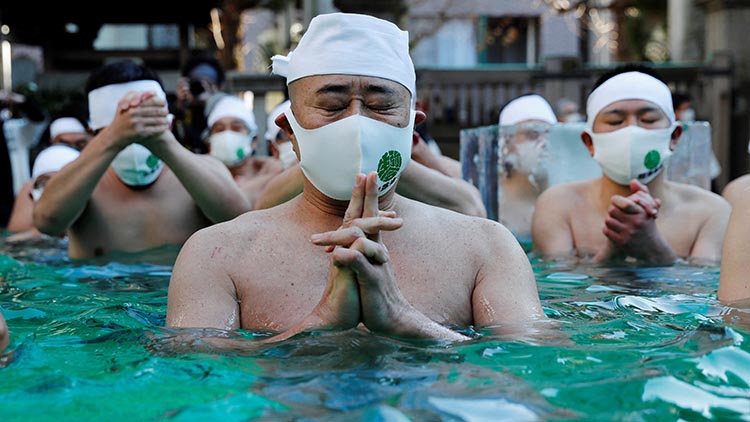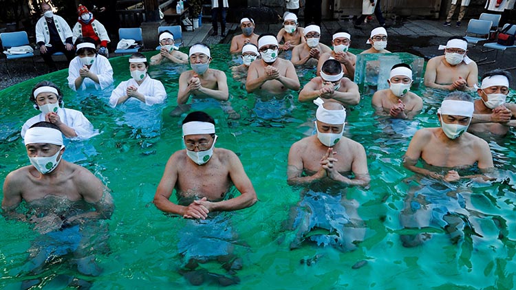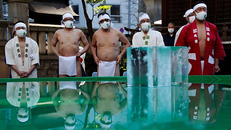 據NHK報道,東京都中央區的鐵砲洲稻荷神社周日舉行了傳統神道儀式「寒中禊」。當天天氣晴朗萬里無雲,約90名參加者將身體浸泡在冷水中,祈願一年無病消災。