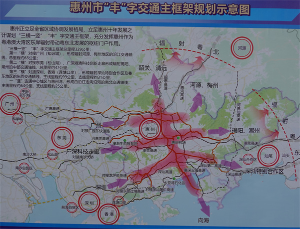 惠州市市長溫金榮表示,近年來惠州搶抓「雙區」和兩個合作區建設重大機遇,以交通一體化為先導,聚焦深度融深融灣,適度超前開展基礎設施投資,全面推進交通設施互聯互通。隨着1號公路等「豐」字交通主框架項目以及廣汕鐵路、深汕高鐵、深惠城際等一大批項目陸續建成,將有力支撐惠州形成陸海互濟、東西暢達、南北貫通的發展格局,加快形成現代化綜合立體交通體系,進一步強化惠州的大灣區東部樞紐門戶地位。