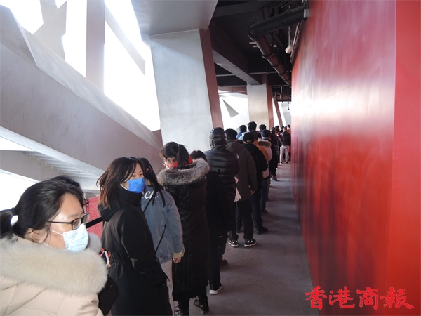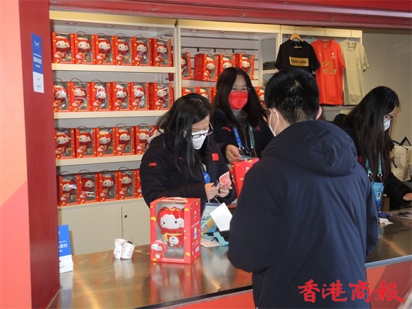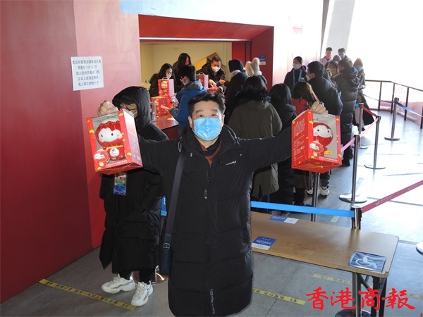 鳥巢內冬奧特許商品專賣店前,人們排起長隊購買冬殘奧吉祥物「雪容融」。