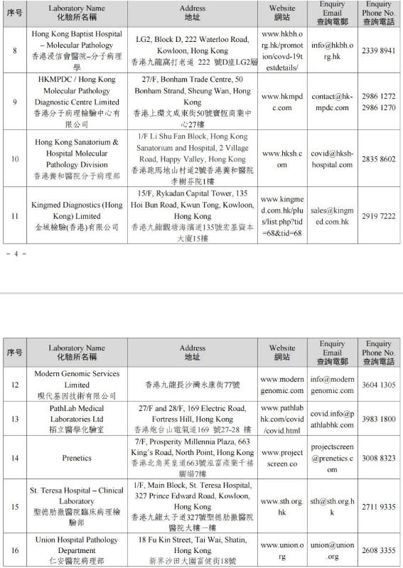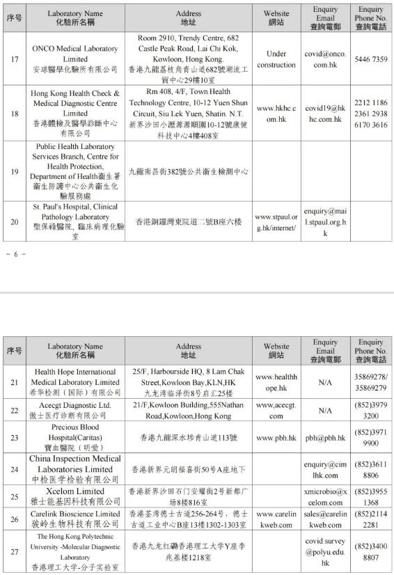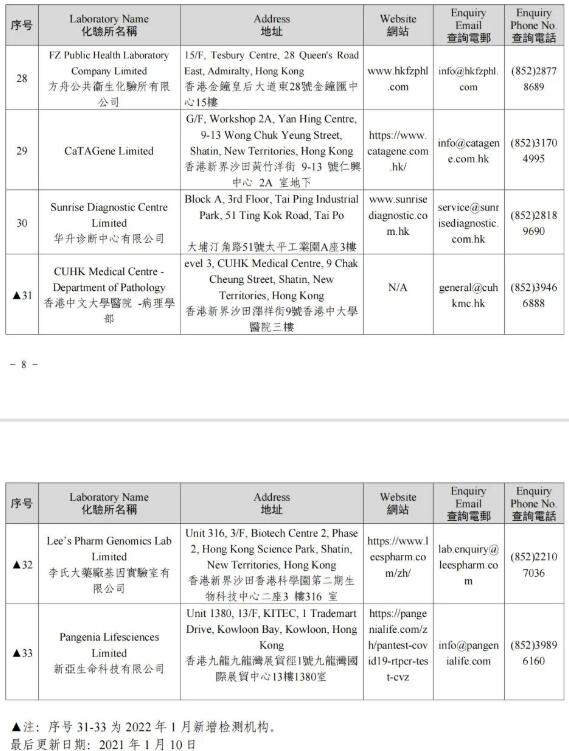 附件:粵港認可的33家香港定點核酸檢測機構名單