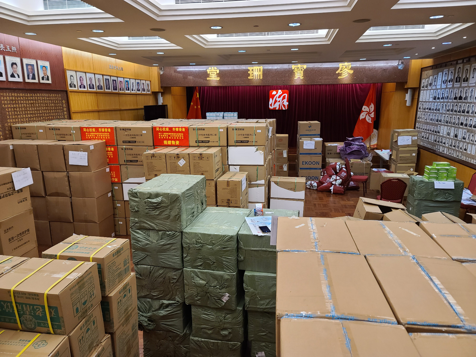 潮總表示,在香港十分嚴峻的第五波疫情爆發時刻,全球潮人和潮汕家鄉政府馳援香港的抗疫物資如潮水般絡繹不絕湧來,作為香港一百多萬潮人的代表團體,義不容辭接收了這一份份海內外潮人的心意。連日來,潮總收到的抗疫物資有N95口罩和普通醫用口罩、快速檢測劑、防護衣、血氧儀、體溫計、連花清瘟膠囊及鄧老清冠飲等中成藥,還有泰國香米和日常用品。