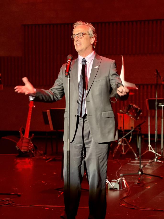 美國威斯康星州奧克萊爾市市長特里·沃爾德為活動致辭