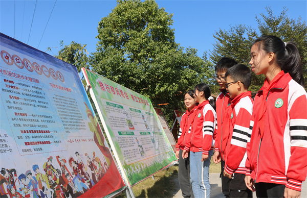 學生觀看民族團結進步展板
