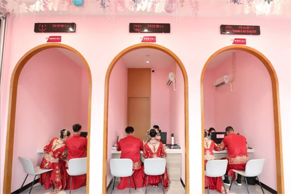 揭牌儀式後,區婚姻登記處為首批登記的三對新人頒證。