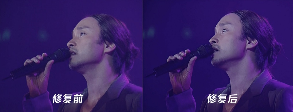 而藉助騰訊雲多媒體實驗室智能影像修復技術,仿佛讓每一位榮迷都進入了穿越時光的隧道,瞬間回到22年前的舞台中央,近距離感受哥哥的迷離眼神,重溫舞台之上的絕代風采。