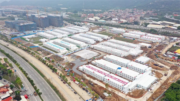 「生命之舟」建設時間緊、任務重,高峰期時,項目現場施工機械300多台、參建人員達6000多名,24小時連軸轉全力推進。不到2天,「火圍山」方艙醫院高效完工投用;僅用17天,佔地170畝的北峰快捷健康驛站全面完工;克服重重困難,白沙快捷健康驛站828間隔離單元交付使用,項目進入收尾階段。