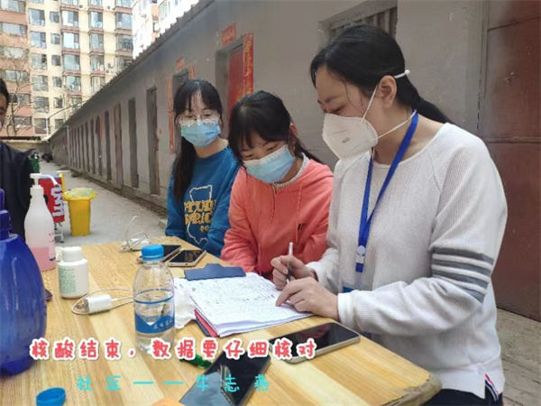 我們小區共設三個固定檢測點,還有一組是上門為行動不便,或年齡大的老人做。統計此次第三次全員核酸檢測共完成1976人的樣本採集,時間僅用了短短的五個小時。順利地完成,是因為社區工作人員前期做了大量的準備工作,而這些工作,都是我們所看不到的。