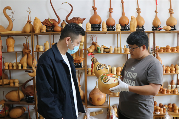 鳴蟲葫蘆自古有之,古時不僅富貴閑人喜歡,而且平常百姓也都非常感興趣,手拿鳴蟲葫蘆,裏面裝有蟈蟈或蟋蟀,日常閑暇之時,幾個有共同愛好的朋友聚在一起,互相誇讚自己手中的葫蘆和裏面裝的鳴蟲,甚至會讓兩隻鳴蟲爭鬥一番,看哪只葫蘆的鳴蟲叫聲響亮有力。(記者 孫珂 石智飛 趙峰)