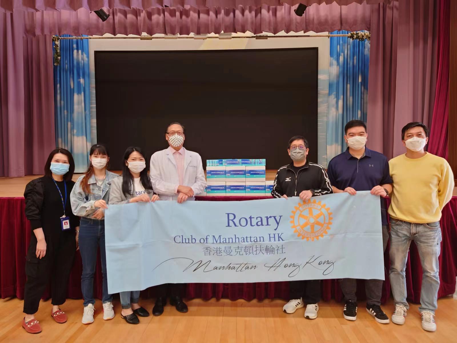 林青(左三)捐贈快測包給學校,左四為全德慈善基金會創辦人唐卓敏。