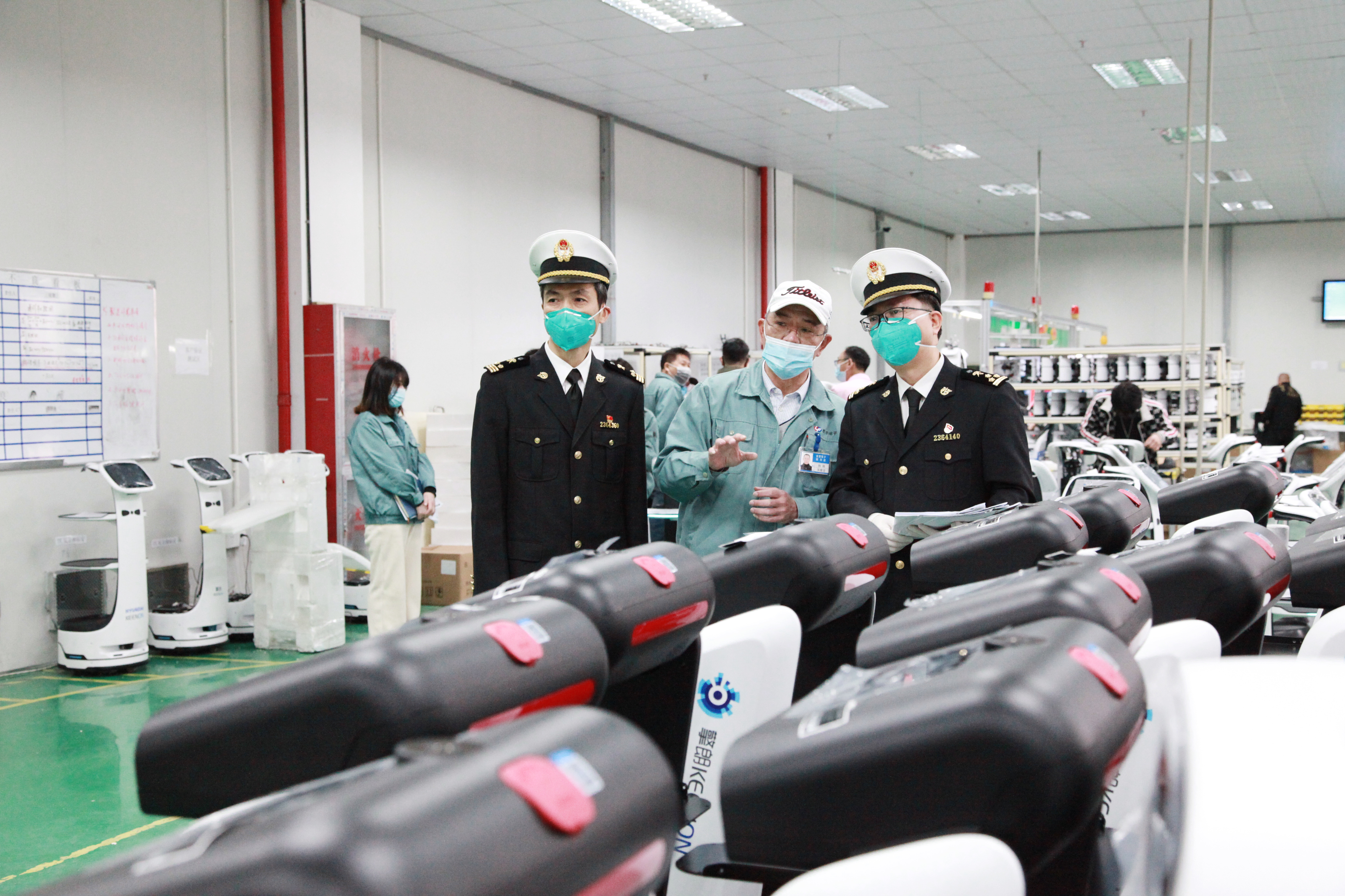 吳江海關關員在機械人生產企業調研。(戴宇婷 攝)