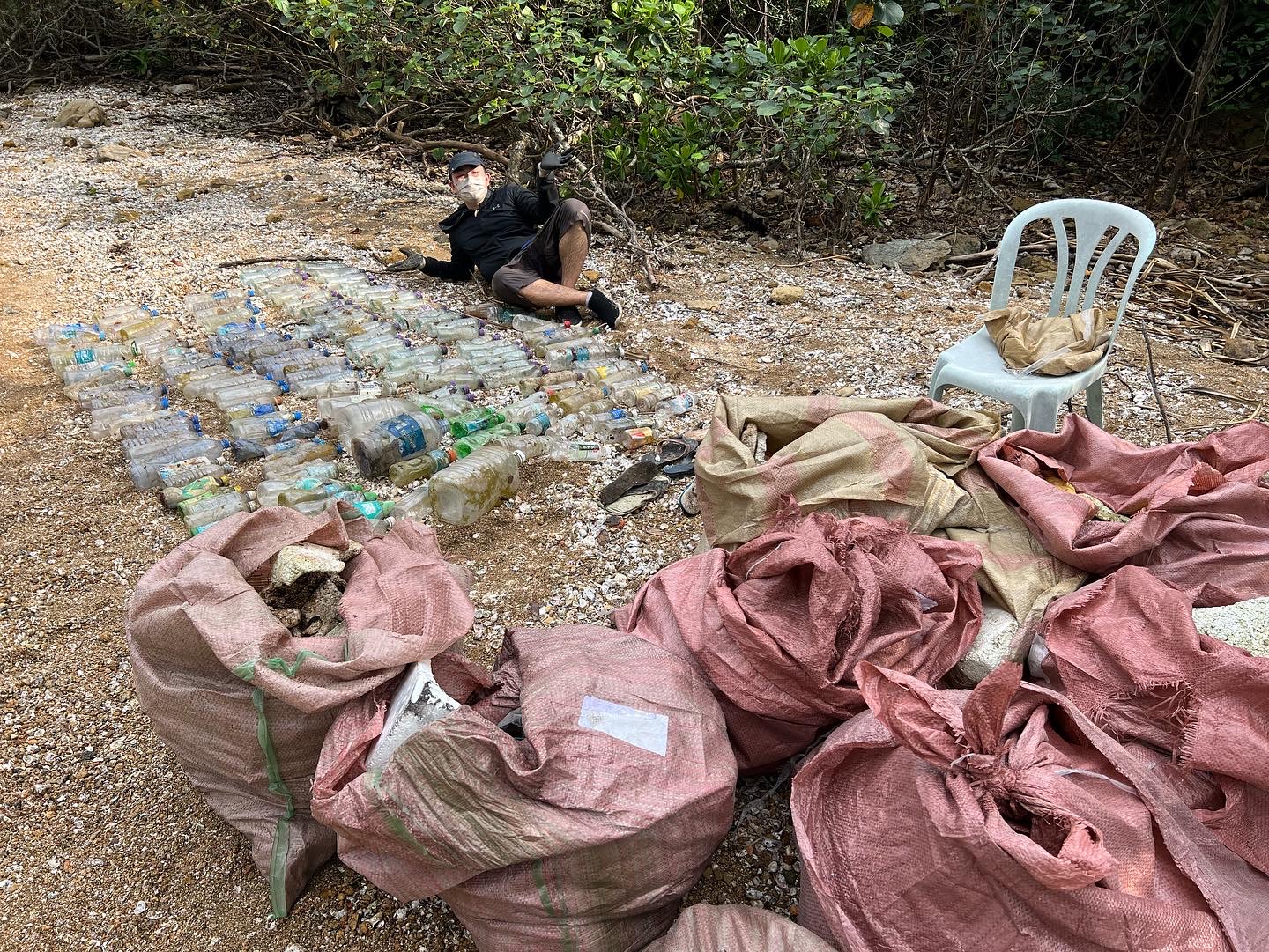 義工清理郊野垃圾,向公眾宣揚「共享山野不留痕」的郊遊態度。