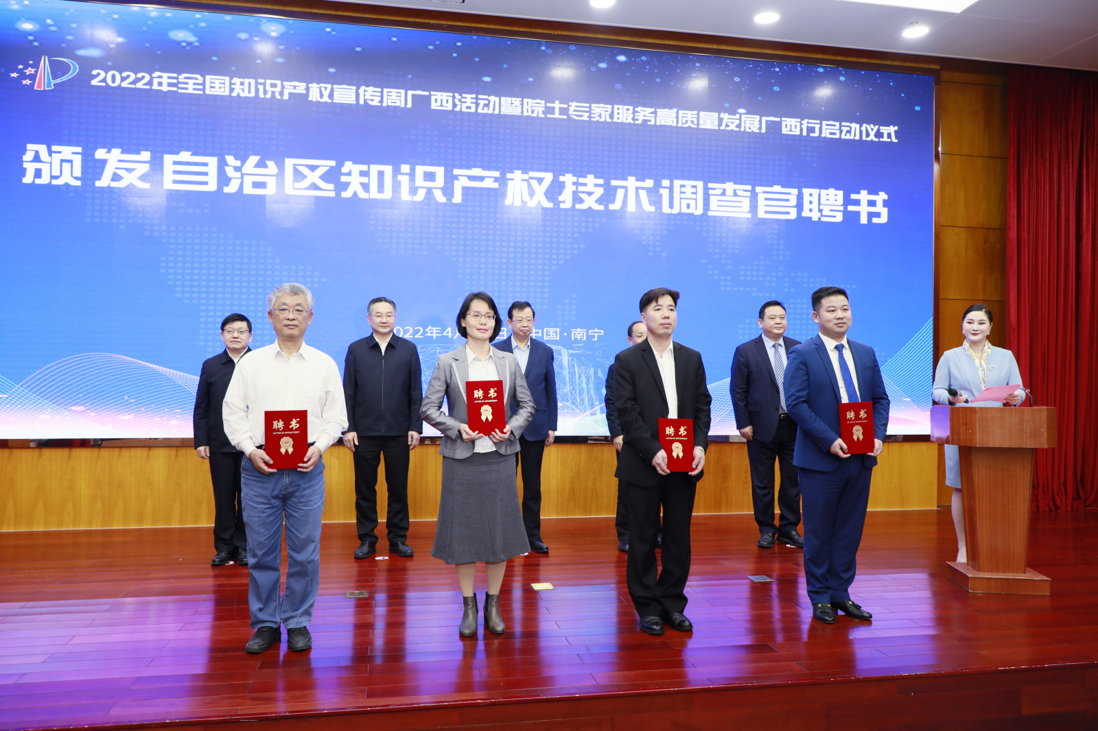 啟動儀式上,企業代表宣讀了「廣西知識產權服務業自律宣言」行動倡議書。廣西壯族自治區副主席、自治區政協副主席李彬為廣西首個海外知識產權維權援助工作站授牌。廣西壯族自治區市場監管局為廣西首批知識產權技術調查官頒發聘書,並與金融機構交換合作文本。