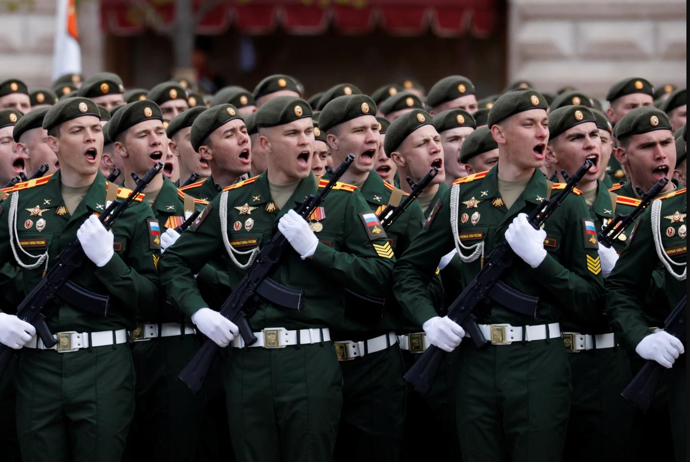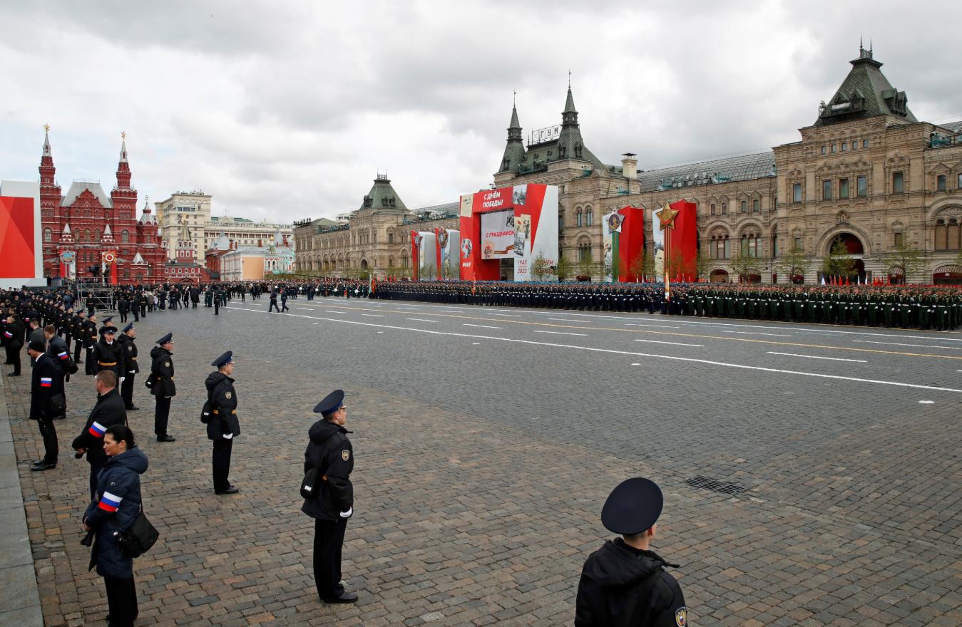 當地時間5月9日10時(香港時間5月9日15時),俄羅斯紀念衛國戰爭勝利77周年閱兵今天舉行。1.1萬名官兵及軍校學員、131件地面武器裝備和77架飛機組成的空中編隊在紅場公開受閱。(圖源:路透社)