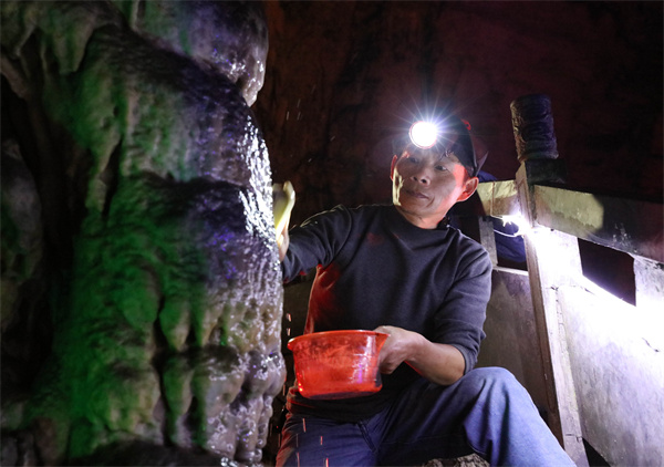 「清潔鐘乳石是個精細活,清潔每根鐘乳石的方法也不一樣,長刷、短刷、擦拭、清水……每一個步驟要都一絲不苟。而且,不能用化學物資來清洗,不然會破壞鐘乳石原有的美!」毛國平說。有時一天下來,最多也只能清潔十來根。很多時候,他和同事們還得避開遊覽高峰期,經常要等到晚上遊客離開後才能進行清潔。