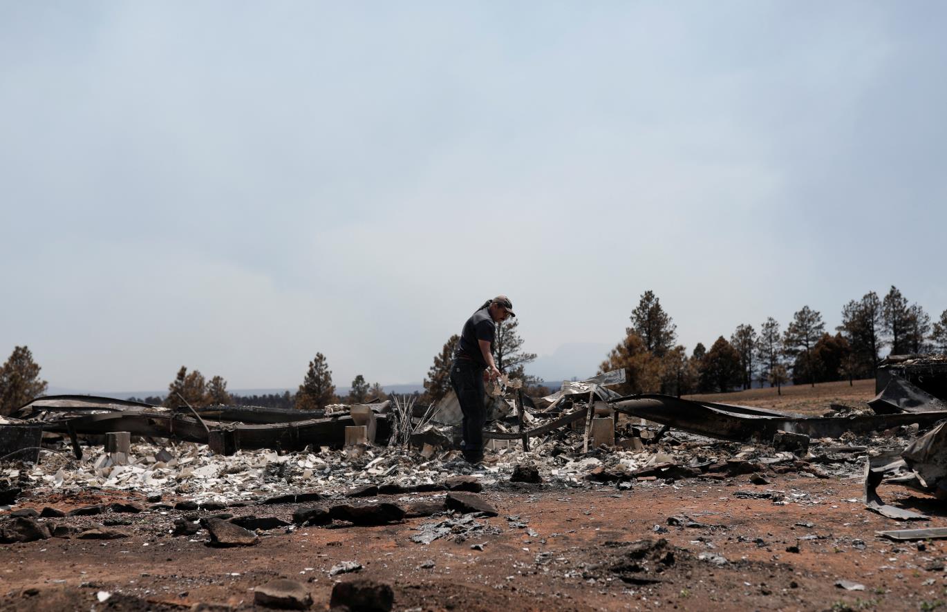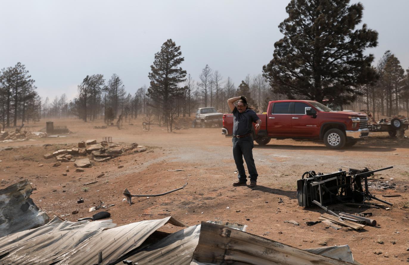 當地時間5月11日,美國最大的活躍山火在新墨西哥州黑湖蔓延,天空被染成橘黃色。據報道,這場大火已經成為該州歷史第二大山火,目前已經燃燒了一個多月。報道稱,大火已經在一個多月的時間裡燒毀了桑格雷-德克里斯托山區(Sangre de Cristo mountains)約72.4千米長的道路,燒毀了數百間房屋和超過95881公頃的土地,而目前大火的控制率只有33%。(圖源:路透社)