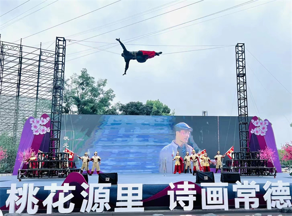 活動體驗環節亦是精彩紛呈。桃花源里,品擂茶美食,經"山有小口"入秦谷,置身其中,體驗"阡陌交通、田園怡然自樂",耳聞雞鳴狗吠、流水潺潺,五柳湖畔常德絲弦聲聲入耳,桃花山上天然氧吧每立方厘米5000個以上的負氧離子讓人享受清新的呼吸,上桃源山、登水府閣,賞桃源工藝美術博物館國內最大的岩柳根雕"桃花源"和古瀟湘八景之"漁村夕照"。