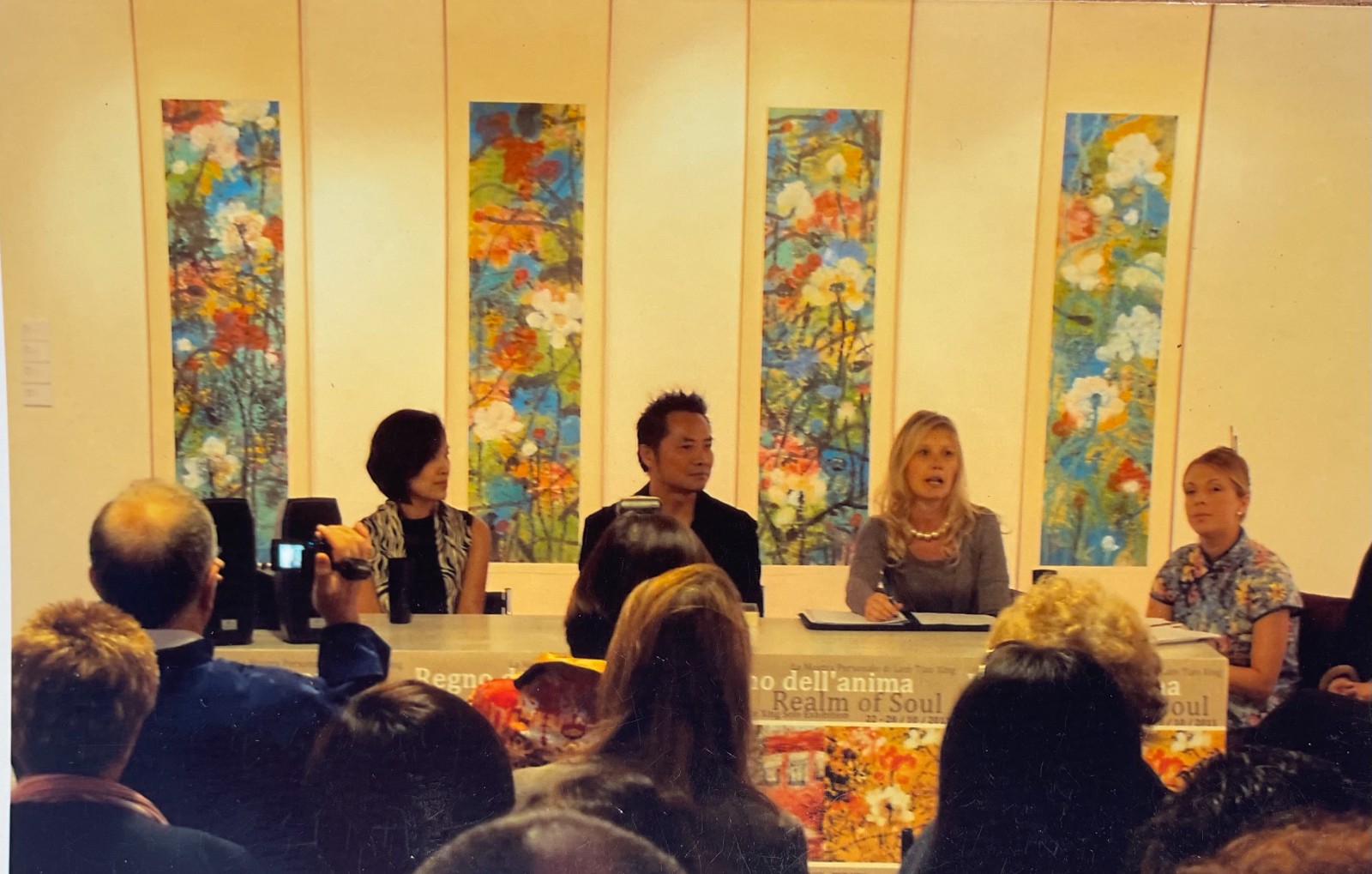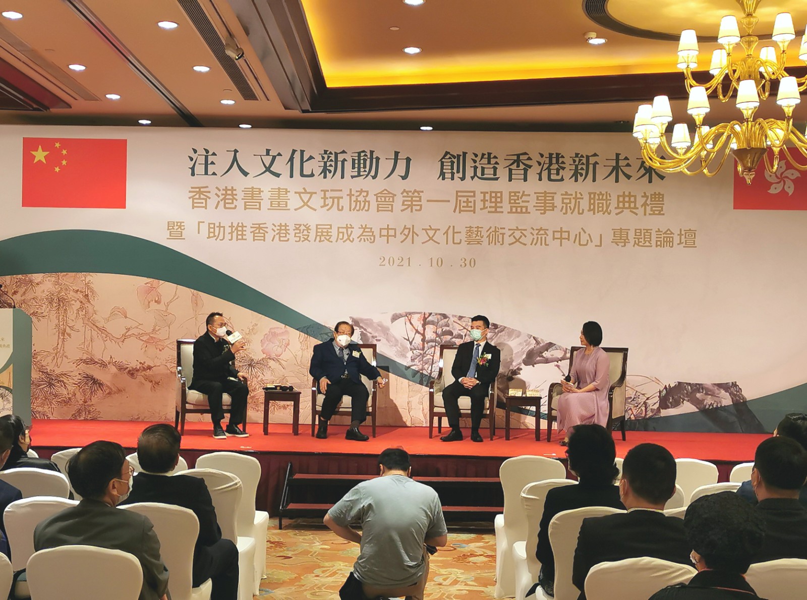 林天行(左一)長期擔任香港美協主席一職,並出任中國美術家協會香港會員分會主席,並為香港特區選舉委員會委員,責任在肩,對香港發展中外文化藝術交流中心有另一番見解。